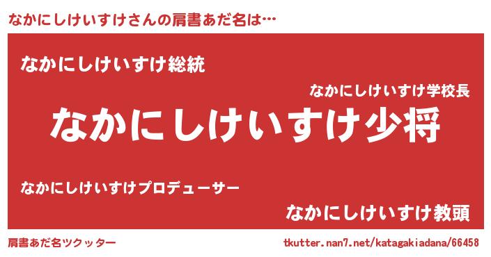 | ヘコむあだ名 | 『なかにしけいすけ(苦笑)』『なかっぺ』 |