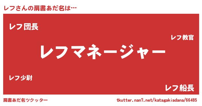 | 男性向けラノベタイトル風あだ名 | 『レフに滅ぼされるだけの簡単なお仕事です』 |