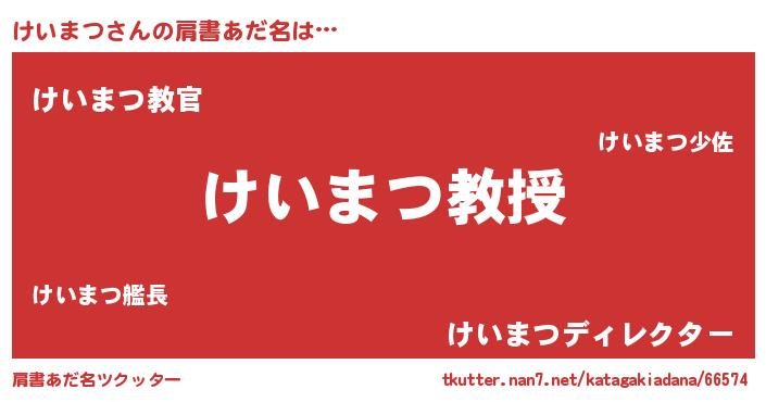 | 男性向けラノベタイトル風あだ名 | 『おまえをオタクにしてやるから、俺をけいまつにしてくれ! 』 |
