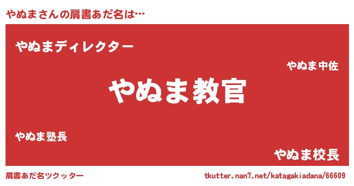 | 男性向けラノベタイトル風あだ名 | 『この素晴らしい世界にやぬまを!』 |