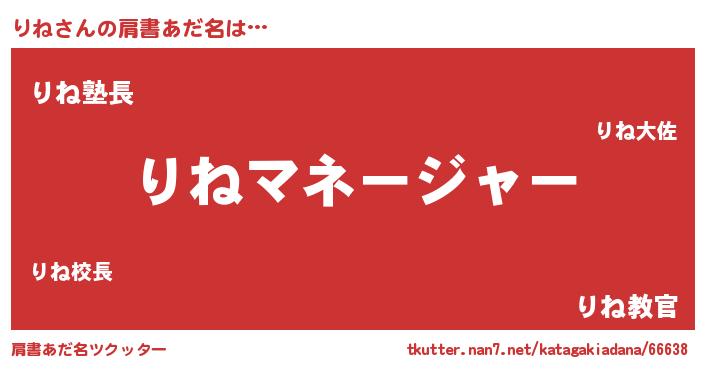 | ヘコむあだ名 | 『りねお』『りね(苦笑)』『なまこ酢』 |