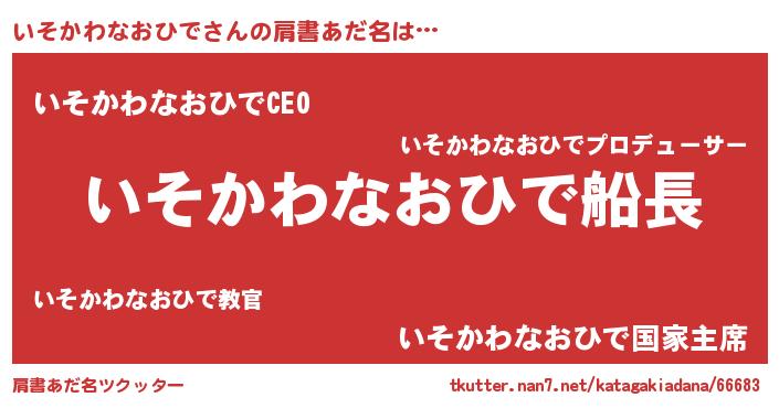 | 男性向けラノベタイトル風あだ名 | 『うちのいそかわなおひでが世界を掌握している!』 |