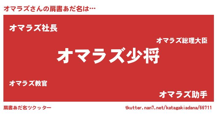 | 胡散臭い通販商品みたいなあだ名 | 『億万長者になれる霊験あらたかなお札…その名も「オマラズ」』 |