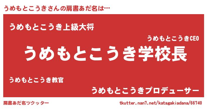 | ポケモン風あだ名 | 『ウックウザ』『ウメキング』 |