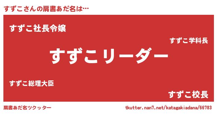 | 男性向けラノベタイトル風あだ名 | 『すずこの嫁は女の子じゃないと思った?』 |