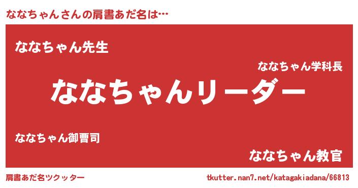 | ポケモン風あだ名 | 『ヒナナチャン』『ゼニナナ』 |