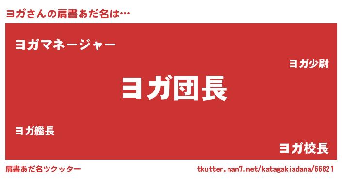 | ポケモン風あだ名 | 『ヒヨガ』『ヨガゴンZ』『ゼニヨガ』 |