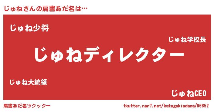 | 女子向けラノベタイトル風あだ名 | 『横柄じゅねと宰相陛下』『じゅね恋絵巻』 |