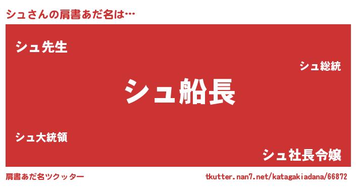 | ヘコむあだ名 | 『シュ(笑)』『シュにー』『酢こんぶ』 |