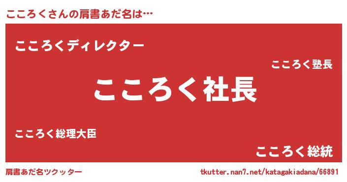 | ヒーロー風カッコイイあだ名 | 『スーパーココロク』『究極戦士ココロク』 |