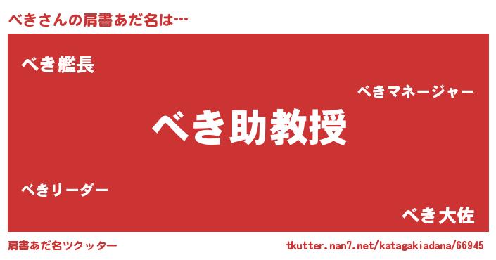 | ヒーロー風カッコイイあだ名 | 『友情の使者べき』『黄金騎士ベキ』 |