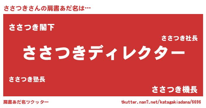 | 意味不明あだ名 | 『自称ささつき』『ペロリンささつき』 |