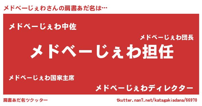 | 意味不明あだ名 | 『永久保存メドベーじぇわ』 |