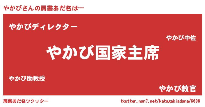 | 欧米人風あだ名 | 『やかびクリステル』『ダレノガレやかび』 |