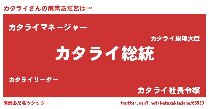 | ヒーロー風カッコイイあだ名 | 『究極戦士カタライ』『スーパーカタライ』 |