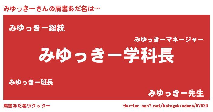 | 女子向けラノベタイトル風あだ名 | 『みゆっきー恋絵巻』『闇のみゆっきー』 |
