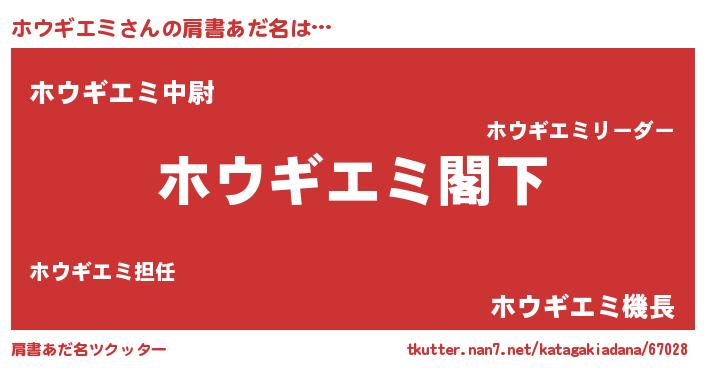 | 男性向けラノベタイトル風あだ名 | 『Re:ホウギエミから始める異世界生活』 |