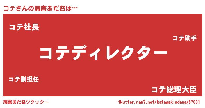 | 男性向けラノベタイトル風あだ名 | 『はたらくコテさま!』『コテの憂鬱』 |