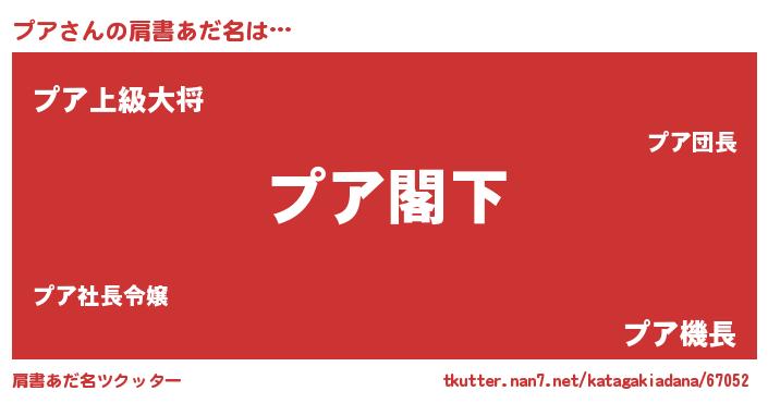 | 女子向けラノベタイトル風あだ名 | 『プアなんてお断りですっ。』 |