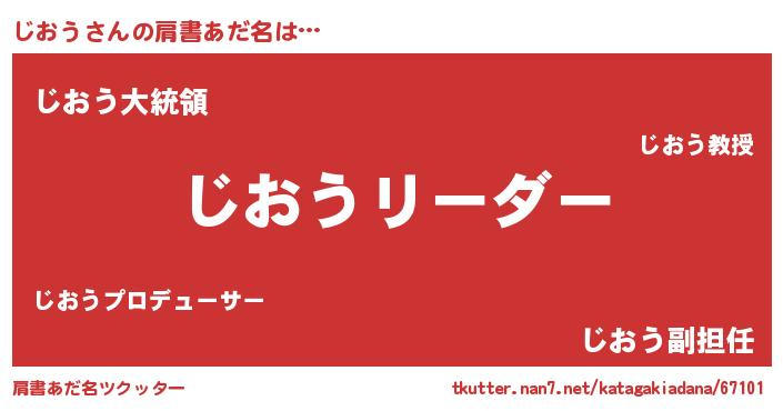 | 意味不明あだ名 | 『とにかく怪しいじおう』『自称じおう』 |
