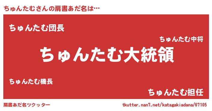 | 男性向けラノベタイトル風あだ名 | 『やはりちゅんたむの青春ラブコメはまちがっている 』 |