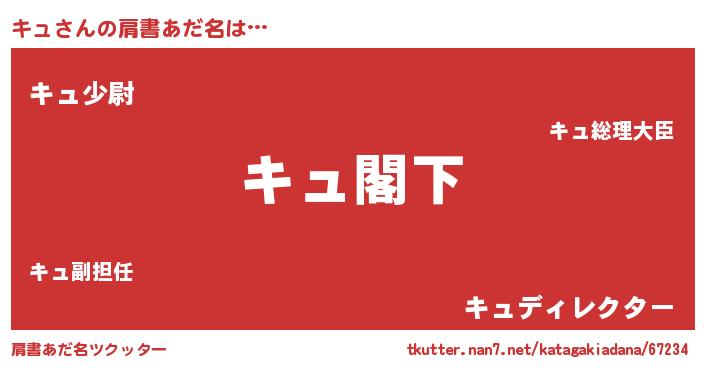 | 意味不明あだ名 | 『自称キュ』『ヨモギ科キュ属』 |
