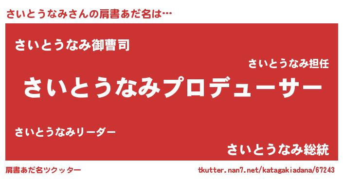 | 恥ずかしいあだ名 | 『プリティーさいとうなみ』『さいちん』 |