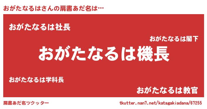 | 男性向けラノベタイトル風あだ名 | 『うちのおがたなるはが世界を掌握している!』 |