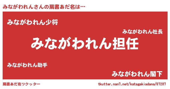| ヘコむあだ名 | 『みながわれん(爆)』『みなもー』 |