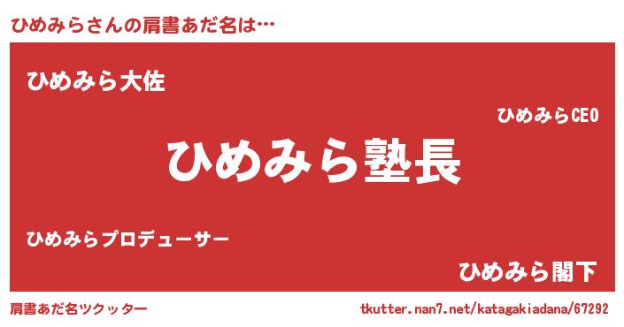 | 女子向けラノベタイトル風あだ名 | 『ひめみらは平凡を望む』 |