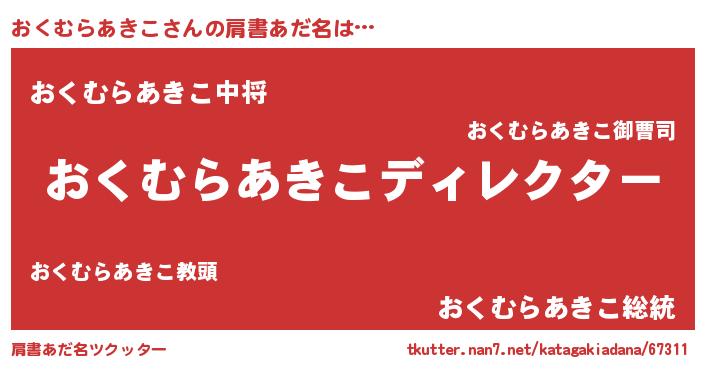 | ヘコむあだ名 | 『おくにゅー』『おくむらあきこ(苦笑)』 |
