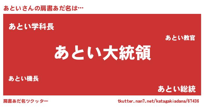 | 意味不明あだ名 | 『あといフォーエバー』『自称あとい』 |