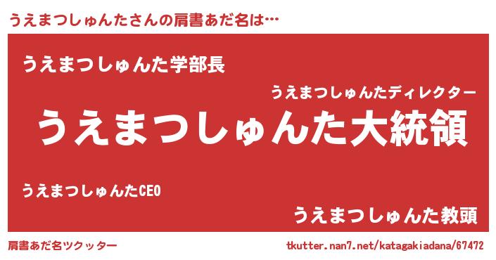 | 男性向けラノベタイトル風あだ名 | 『やはりうえまつしゅんたの青春ラブコメはまちがっている 』 |