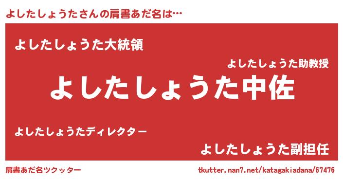 | 男性向けラノベタイトル風あだ名 | 『転生したらよしたしょうただった件』 |