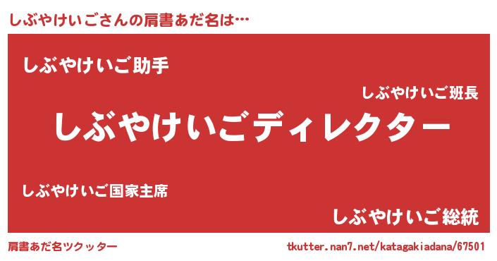 | 男性向けラノベタイトル風あだ名 | 『しぶやけいごに滅ぼされるだけの簡単なお仕事です』 |