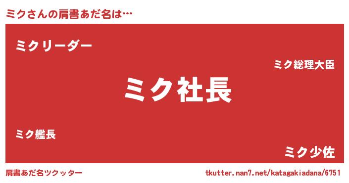 | ヘコむあだ名 | 『ミクにー』『ミクぷりん』『豆乳』 |
