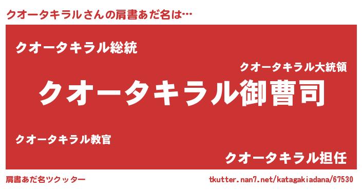 | ヘコむあだ名 | 『クオっふぃ~』『クオータキラル(苦笑)』 |
