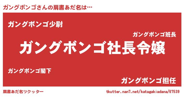 | 女子向けラノベタイトル風あだ名 | 『(仮)ガングボンゴのやんごとなき事情』 |