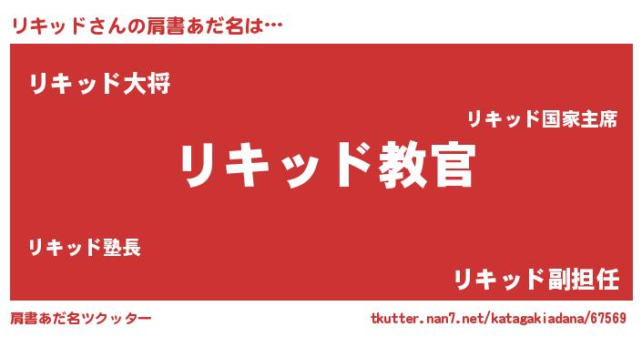 | 男性向けラノベタイトル風あだ名 | 『この素晴らしい世界にリキッドを!』 |