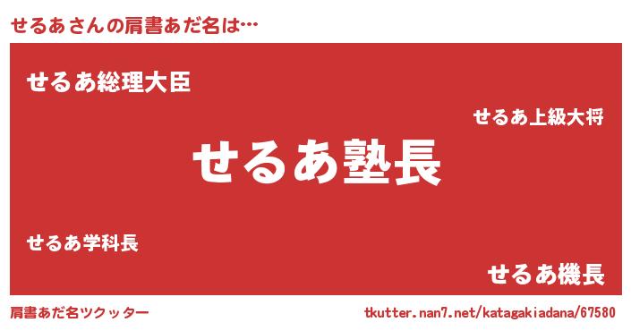 | 意味不明あだ名 | 『とにかく怪しいせるあ』 |