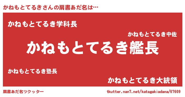 | 男性向けラノベタイトル風あだ名 | 『うちのかねもとてるきが世界を掌握している!』 |