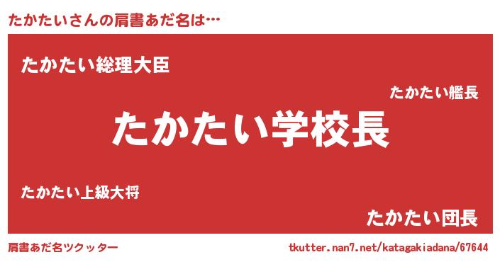 | ヒーロー風カッコイイあだ名 | 『慈愛の使者たかたい』『炎刃騎士タカ』 |