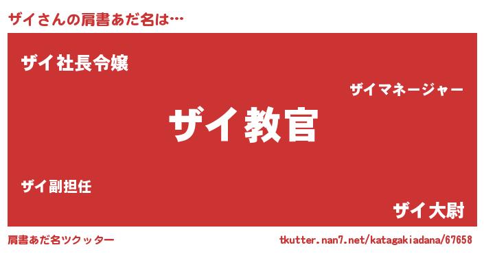 | 男性向けラノベタイトル風あだ名 | 『この素晴らしい世界にザイを!』 |