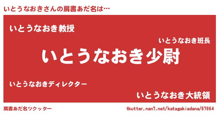 | 男性向けラノベタイトル風あだ名 | 『いとうなおき~年齢イコール彼女いない歴の魔法使い~』 |
