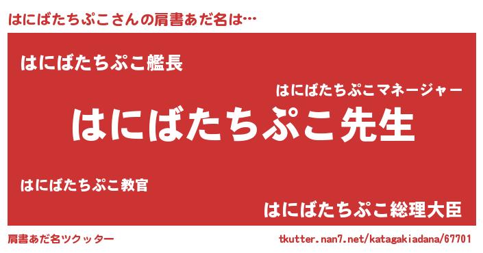 | 意味不明あだ名 | 『永久保存はにばたちぷこ』 |