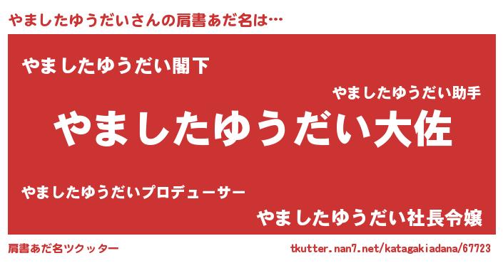 | 男性向けラノベタイトル風あだ名 | 『転生したらやましたゆうだいだった件』 |