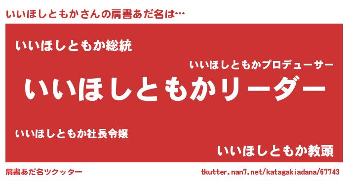 | ポケモン風あだ名 | 『ヒイイホシトモカ』『イイセウス』 |