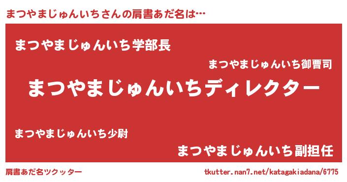 | 男性向けラノベタイトル風あだ名 | 『はたらくまつやまじゅんいちさま!』 |
