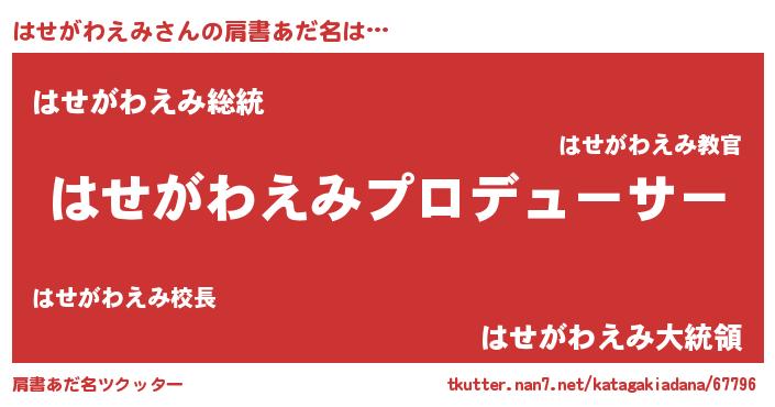 | ヒーロー風カッコイイあだ名 | 『最強戦士ハセガワエミ』『仮面ハセダー』 |
