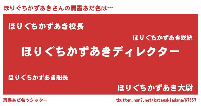 | 男性向けラノベタイトル風あだ名 | 『ほりぐちかずあきに滅ぼされるだけの簡単なお仕事です』 |